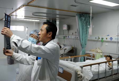 Updated: 2008-11-19 09:17 ![]() A wounded passenger is treated at the People's Hospital in Lhasa, capital of southwest China's Tibet Autonomous Region November 18, 2008. A passenger bus plunged into a valley on last Friday in Nagqu prefecture, leaving 18 dead and 29 others injured. The wounded have been sent to major hospitals in Lhasa and Police are investigating the cause of the crash.[Xinhua] |