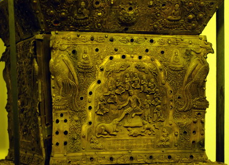 This photo taken on November 22, 2008 shows an about 1,000-year-old miniature pagoda, which is believed to contain a part of Buddha's body on display in Nanjing, Jiangsu province. [Xinhua]