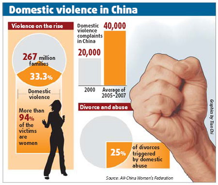 Updated: 2008-11-25 07:46 ![]() Chen Benjian, director of China Law Society's Center for Combating Domestic Violence, agrees: "Above all, we need an anti-domestic violence law that experts have been seeking for more than five years." "Studies show domestic violence, physical and mental alike, can take place in families of any social class," Chen says. "Living without violence is the right of every family member. Community intervention can greatly help reduce such violence," Chen says. Organizations and research institutes such as the Maple center and the Legal Center of Peking University, too, have sought laws to protect victims of domestic violence. Maple center director Hou says she expects legal steps to be taken across the country to remove wife-abusers from the family and to re-educate them. Seven State agencies, including the ministries of public security, justice, civil affairs and health, issued a joint statement last month urging policemen answering calls on the hotline (110) to respond to domestic violence complaints. But even though the criminal law does not exclude private matters, police are reluctant to deal with "family affairs", China Politics and Law University professor Xia Yinlan says. Police start investigating a domestic violence case only after someone is killed or seriously injured. "That only brings perpetrators of crime to justice but does not help prevent such incidents it does not protect the victims' rights or interests, either." Though police in Liaoning province began responding to complaints against domestic violence four years ago, such interventions can only deal with emergency situations and cannot be the final solution. What makes matters complicated is that prosecutors in some cities regard "wife-beating" as a private matter. Even the Beijing procuratorate introduced a rule in 2002 to exclude "light injuries" cases, including domestic violence, to cut costs. The first legal definition of domestic violence came as late as in 2001, when the revised Marriage Law defined it as "an act involving beating, tying-up, mutilation and forced restriction of personal freedom, which causes a family member physical or mental harm". But even that is "far from perfect because it lacks clarity on enforcement", Xia says. Since there is no specific law on domestic violence, such cases are dealt with under broader women's rights and anti-violence legislation such as the 1992 Law on the Protection of Rights and Interests of Women and the criminal law that covers deliberate injury caused within families, which carry less harsh punishment. "A combination of a bias against domestic violence and weak law enforcement have forced victims to sometimes turn to desperate measures," says researcher Chen Min of the Supreme People's Court. More than half of the women imprisoned in recent years are victims of domestic violence who took revenge on their abusers. In the 1970s, American forensic psychologist Lenore Walker coined the phrase "battered woman's syndrome" to explain the extreme behavior women who suffered from long-term violence took against their abusers. Battered woman's syndrome has been used as a defense for women charged with murder for killing their abusers. Although Chinese law acknowledges the right of self-defense, it does not consider the psychological state of battered women. As a result some of the battered women who killed their male abusers have been treated like common criminals and charged with murder, Chen Min says. But despite not having a specific law on domestic violence China has taken strides, especially after the 1995 Fourth World Conference on Women in Beijing, to protect domestic violence victims. Twenty-five provinces, autonomous regions and municipalities have already introduced anti-domestic violence regulations, largely because of the efforts of local women's NGOs and women's federations. Apart from that, several civil affairs departments have set up shelters for women, and some women's organizations and health departments have jointly set up domestic violence injury identification centers. "Elimination of domestic violence requires the efforts of the whole of society," Chen Benjian says. "We need to establish a set of effective measures to curb domestic violence so that the perpetrators are punished From a social and cultural perspective, we have to build gender equality and make domestic abuse socially unacceptable. Above all, women have to learn to say 'No' (to violence) bravely." That is exactly what Maple center's counselor Xie Hua has told Li Li. When Li said, "Sometimes I hate myself for being such a coward but I dare not defend myself for fear of inviting more trouble", Xie told her that "too much tolerance and too many concessions sometimes invite more violence". After talking with Xie, Li has promised to defend herself and seek community help if her husband beats her again. |