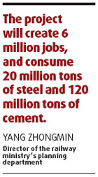 The large-scale projects will be good news for passengers, as journey times between capital cities will be "cut in half", he said. The increased spending is part of the country's mid- to long-term railway plan, revisions to which were approved by the State Council on Oct 31, but announced only yesterday. The project will include the construction of new rail lines, "doubling" existing ones, and the electrification of certain other sections, Lu said. "By 2020, 41,000 km of new lines will be in place, up from the original plan to build 16,000 km of track," he said. The massive plan will include the construction of routes linking China to Russia, Mongolia and other neighboring countries, and the expansion of cross-country routes, he said. The high-speed rail network will also be extended by 16,000 km, rather than 12,000 km as originally planned, he said. By 2020, the length of railways on which passenger trains can run at up to 200 kph will be 50,000 km, up from the planned 30,000 km, Lu said. By linking all provincial capitals and cities with more than 500,000 residents, the network will be accessible to 90 percent of the population, he said. ![]() The changes to the railway plan were made partly in response to the need to boost domestic demand, he said. Yang Zhongmin, director of the railway ministry's planning department, said the project will create 6 million jobs, and consume 20 million tons of steel and 120 million tons of cement. A number of rail projects, valued at 1 trillion yuan, are already under construction across the country, he said. Next year, 600 billion yuan will be spent on the construction of track and 100 billion yuan on buying rolling stock, Yang said. Also on Thursday, Zheng Jian, deputy chief engineer with the ministry, responded to recent suggestions in the media that China has a shortage of skilled manpower. "We have about 30,000 professionals in railway design and geological surveying, which is more than enough to meet our requirements," he said. Also, stringent control mechanisms have been developed to monitor construction quality and the use of funds, he said. By the end of this year, the country's rail network will have grown to 79,000 km. |