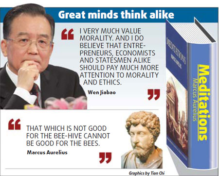 Updated: 2008-11-28 14:18 It is a classic of the West, a book Roman emperor Marcus Aurelius wrote in the 2nd century AD. There are also a dozen Chinese editions of it by various translators, the first one published in Beijing in 1989, receiving limited attention.