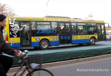 Updated: 2008-12-02 11:37 ![]() An ethanol-powered bus made in Sweden is seen in the street of Beijing, Capital of China, December 2, 2008. This kind of environmentally-friendly bus could reduce greenhouse gas emissions. It could meet Euro-V emission standards. [Asianewsphoto]