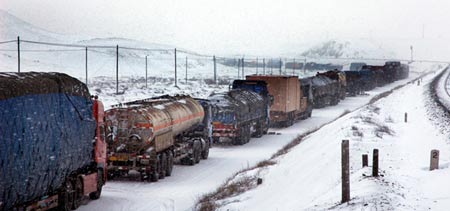 Xinjiang has been hit by heavy snowfalls for the past two days with the approach of an intense cold front from west Siberia, the website Tianshannet.com.cn reported. Truck drivers were stuck on expressways while regional buses remained in their depots, the website said. The Urumqi international airport was also closed for about an hour yesterday morning, causing 32 flight delays and two cancellations.