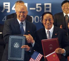 Images of him hugging former vice-premier Wu Yi and fervently shaking hands with her successor Wang Qishan were just two among many that made the front pages of the nation's press. On Friday, the 62-year-old Treasury secretary gave photographers one more opportunity, as he addressed the fifth Sino-US SED, his last time as head of the US delegation. The former Wall Street banker, and member of the outgoing Bush administration, will step down next month. In a farewell speech to his Chinese counterparts, Paulson said: "We all can be proud of what we have built through the SED.