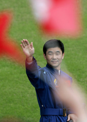 Astronaut Liu Boming waves to the crowd during a variety show to welcome the astronauts of the Shenzhou-7 space mission in Hong Kong, South China, December 7, 2008. [Agencies] |