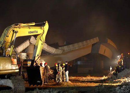 Two people were killed and four others injured when a 200-meter section of a bridge that was undergoing demolition collapsed in Kunming, Yunnan province Tuesday evening. An excavator and several workers were on the Xiaozhuang Bridge when the accident occurred at about 7:30 p.m., destroying a car parked under the bridge, Xinhua News Agency reported. The injured victims are receiving treatment at a nearby hospital. The bridge was located on an artery road linking the provincial capital and its northwestern parts. |