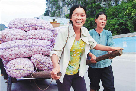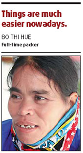 Updated: 2008-12-11 10:07 It is another day at the China-Vietnam border, with the hot and heavy air typical of the sub-tropics in November. Dressed in the traditional Vietnamese garb of indigo blue with a bright-colored headscarf and sandals, Bo Thi Hue unloads heaps of garlic from a truck under a sweltering sun. The Vietnamese, in her 30s, works as a full-time packer.