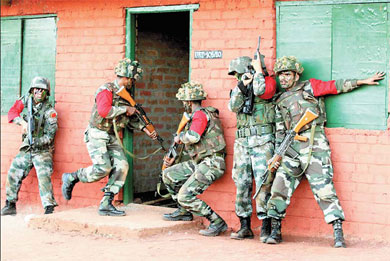 Updated: 2008-12-13 09:12 The country's top police officer has asked for tightened anti-terrorism measures in the wake of the attacks in Mumbai, while Chinese and Indian troops continued their anti-terror drill on Friday. Speaking to a national coordination team on anti-terrorism on Thursday, Public Security Minister Meng Jianzhu pointed to the need to keep a high alert on potential threats, particularly from the Eastern Turkistan Islamic Movement (ETIM) in the country's northwestern region. The ETIM was identified by the United Nations as a terrorist organization in 2002. The recent attacks in Mumbai, India, again provided clear evidence that terrorist forces are still active in areas surrounding China, Meng said. At least 188 people were killed and 293 were injured in the Mumbai attacks. "We must fully estimate the negative impact possibly brought about by the incident (in India) and seriously learn lessons from it," he said. Meng also called for a rise in public anti-terror awareness, saying anti-terror knowledge should be part of primary and middle school education. While police are beefing up anti-terror efforts, military forces are also tightening international cooperation to combat terrorism. Sino-Indian drill On Friday, Chinese and Indian troops continued their anti-terror military drill as soldiers began to cordon and search for "terrorists" in villages after marching to the target area overnight.