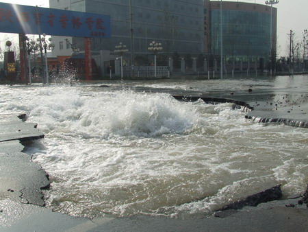 The latest pipe burst in the northwestern city of Baoji, Shaanxi Province on Tuesday was the 11th since the water channeling projects coming into use a decade ago and the third so far this month, posing water shortage over 70 percent of the city's 600,000 urban residents. [Xinhua]