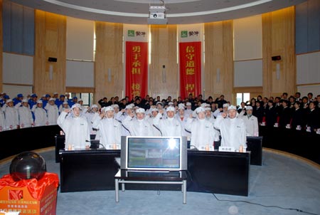 "We solemnly promise here that we will uphold professional ethics, abide by the law, improve management, take strict quality control of raw milk, perfect after-sales services and take full responsibility for every step in providing our products," Mengniu employee representatives said in an oath Thursday morning at their headquarters in Hohhot, Inner Mongolia, one of China's dairy heartlands. (For the video in Chinese, please visit: http://news.cctv.com/special/zhibo/mengniu/index.shtml)