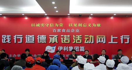 Yili employees took the same oath Thursday afternoon at their headquarters, also located in Hohhot. Mengniu and Yili are the third and fourth food companies to take the oath in a nationwide campaign organized by seven governmental agencies, including the Publicity Department of the Central Committee of the Communist Party of China (CCCPC), Civilization Office of the CCCPC, Ministry of Industry and Information Technology of China, State-owned Assets Supervision & Administration Commission of the State Council, State Administration for Industry and Commerce, General Administration of Quality Supervision, Inspection and Quarantine of China, and the All-China Federation of Industry and Commerce. A total of 100 food-producing companies will take the oath in the campaign, which was launched on December 9 when Beijing-based dairy giant Sanyuan, took the oath. "I hope the company [Mengniu] will keep its promise and become a reliable brand," said Jiang Xiwei, deputy chief of staff of Publicity Department of the CCCPC, at Mengniu's oath-taking ceremony. |