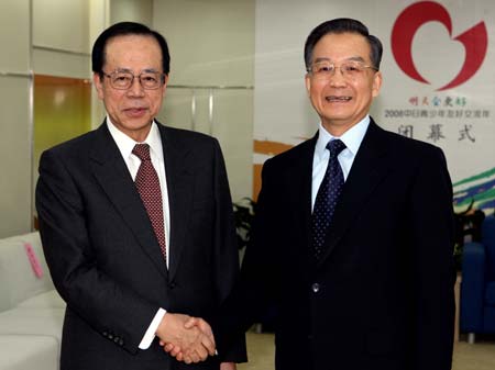 Chinese Premier Wen Jiabao and former Japanese Prime Minister Fukuda Yasuo joined the youth at the closing ceremony in Beijing University of Aeronautics and Aerospace. In their half-hour meeting before the ceremony, Wen and Fukuda, who decided on this program during their talks in Singapore last year, hailed the exchange program "reached its expected aims." The program coincided with the 30th anniversary of the signing of the China-Japan Peace and Friendship Treaty, which Wen said "made the exchange activities more significant." Under the program, more than 12,000 youth from China or Japan paid visits to the other country since the program was launched in March in Beijing. "Hopefully the young generation of the two countries will keep the old memories, cherish the current days and create a bright future," Wen said, calling for youth to carry forward China-Japan friendship. Fukuda said Japan-China was founded on the deeper mutual understanding and friendship between the two peoples. "The exchange program is a great success and will help boost the youth interaction," Fukuda said. As a finale of the program, a 1,000-member Japanese delegation were paying week-long visit to China. Among the delegations were Japanese youth from various walks of life, including parliamentarians, government officials, businessmen and journalists. |