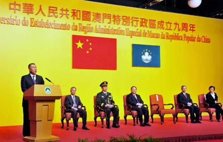 Macao chief hails SAR's achievement upon its 9th anniversary