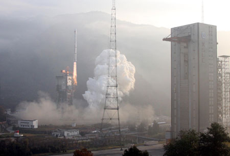 ![]() China's third geostationary meteorological satellite, the Fengyun-2-06, is launched successfully on a Long March-3A carrier rocket from the Xichang Satellite Launch Center in southwestern Sichuan Province, at 8:54 am, December 23, 2008. [Xinhua]