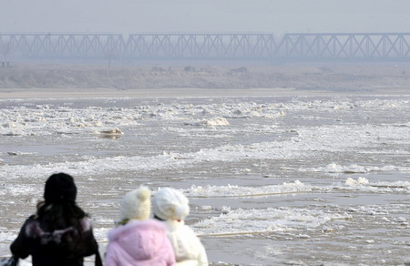 Ice slush washed down Yellow River in Shandong