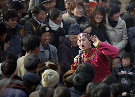 ![]() An actor performs for worshippers during the "Dajiao" Taoist festival in Fengjiashan village, Shaanxi province December 26, 2008. Residents of villages in Northern Shaanxi province gather to the annual three-day religious festival to pray for a good harvest and fortune in the upcoming year. [Agencies]