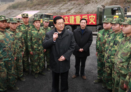Updated: 2008-12-30 08:30 CHENGDU - President Hu Jintao visited quake-hit Sichuan Province over the weekend, showing concern for survivors and inspecting reconstruction work as winter sets in.