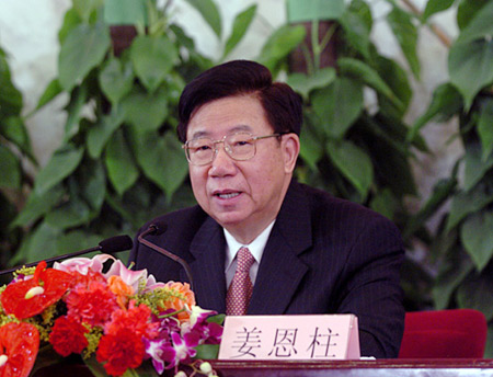 The First Session of the Eleventh National People's Congress (NPC) holds its first press conference at the Great Hall of the People in Beijing March 4, 2008. Jiang Enzhu, spokesman for the NPC session, answered questions of reporters. [Xinhua]