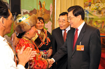 The Dalai Lama has never stopped plotting to separate Tibet from China since he betrayed the country, Zhang, secretary of the Tibet Autonomous Region Committee of the Communist Party of China, said on the sidelines of the ongoing session of the National People's Congress, the top legislature. "We will never tolerate those who are set on such activities." Qiangba Puncog, chairman of the government of the Tibet autonomous region, expressed his confidence in Tibet's security during the forthcoming Olympic Games. "All Chinese hope for a successful Olympics," Zhang said. "Anyone who wants to sabotage the Games will get nowhere." Qiangba Puncog, the top government official in Tibet, also warned that the activities of the Dalai Lama clique were the "main factors of instability in Tibet". "They will not succeed. We are fully prepared and have full confidence. "We will definitely ensure the Olympics and Olympic-related events in Tibet proceed smoothly," he said. The Tibet leg of the Olympic torch relay is due to scale Mount Qomolangma. President Hu Jintao on Thursday stressed stability and social harmony in the Tibet autonomous region while joining a panel discussion with Tibetan legislators. "Stability in Tibet concerns the stability of the country, and safety in Tibet concerns the safety of the country," Hu told the delegation. |