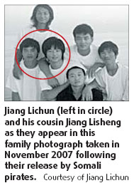 Updated: 2009-01-05 07:37 Jiang Lichun ducks whenever he hears a sharp sound even remotely resembling a gunshot. His instinct was born out of fear after he saw Somali pirates shoot one of his fellow sailors. Equally harrowing an experience for him were the 202 days he spent in Somali pirates' captivity. The fear in Jiang is still palpating: "I will never go back to sea," says the Liaoning province native.