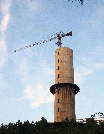 Undated file photo shows the unfinished sightseeing tower in the Daijiayan scenic area of Southwest China's Chongqing Municipality. Lack of investment led to the demolishment of the half-built tower, a local official said Tuesday. [cnsphoto]