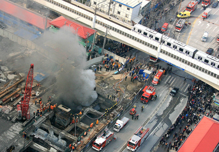 A crane driver died at 10:30 a.m. after the crane overturned at the city's Line 9 urban rail, which is under construction, said an official with the local work safety bureau. Just an hour later, a fire broke out 20 meters underground at a construction site on Line 11, killing one worker and injuring six others, according to the fire brigade. The fire was put out at about 1 p.m.. The injured workers have been hospitalized. Authorities are investigating the causes of the accidents. |