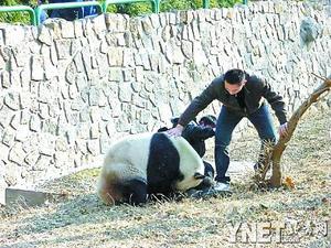 Gu Gu, a 110-kilogram panda, mauled the man's legs and refused to let go until zookeepers pried his jaws open with tools, said a zoo spokeswoman surnamed Gong. She would not give her full name. The nine-year-old Gu Gu first made news in 2007 when he bit a drunken tourist who jumped into his pen and tried to hug him. The tourist retaliated by biting the panda in the back. In October, Gu Gu bit a teenager who climbed into his exercise area out of curiosity. The Beijing News said the latest victim, Zhang Jiao of central Anhui province, suffered damage to major ligaments and is recovering from surgery. The newspaper quoted tourists as saying Zhang appeared to first look around to see if pandas were nearby before jumping in to get his 5-year-old son's toy. Pandas, often seen as being cute and cuddly, can be violent when provoked or startled. |