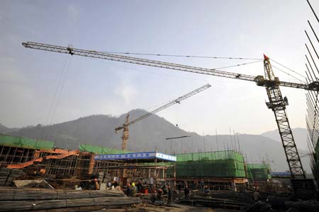 ![]() Photo taken on Jan. 12, 2009 shows the building site of an elementary school in Leigu Town of Beichuan County, pounded by the May 12 devastating earthquake last year, southwest China's Sichuan Province. People in Beichuan had engaged in reconstructing their hometown with 47,814 farmers' houses completed or being built, which account for 76% of the total. [Xinhua]