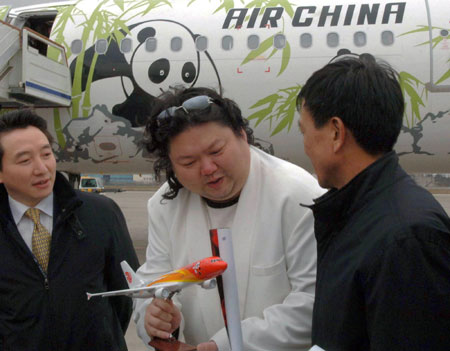 Panda-themed flight visits Taipei