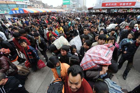 To cope with the booming passenger flow, extra trains were rostered for traffic hubs and densely populated regions. The MOR warned at the same time that the railways are expected to face even bigger challenges in Feb, when people will return to work from home towns by train. The ministry pledged more trains for transportation hubs including Chengdu, Hefei, Wuhan and Nanchang. |
