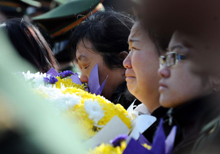 Updated: 2009-02-14 19:50 Local residents mourn the death of Zhang Jianyong, who died Monday when battling a fire at the new China Central Television (CCTV) headquarters, Beijing, February 14, 2009. [Xinhua] |