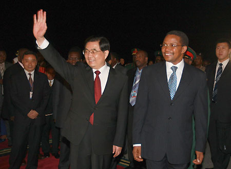 This is the president's sixth visit to Africa and his second since the Beijing Summit of the Forum on China-Africa Cooperation in 2006. The four-country African tour has taken Hu to Mali and Senegal. After his stay in Tanzania. Hu will travel on to Mauritius before flying back home on Tuesday. "The visit is aimed at cementing friendship, deepening cooperation, dealing with challenges and seeking common development," Hu said. As a sincere friend of Africa, China will actively support African countries in developing their economies, and improving livelihood and strengthening cooperation, he said. "China will fully and punctually implement measures agreed at the Beijing Summit of the Forum on China-Africa Cooperation, seek China-Africa pragmatic relations and promote the further development of our new strategic partnership," Hu said. Eight measures announced at the landmark summit included massive tariff cuts, debt exemptions, and doubling aid to Africa over a three-year period among others. Hu said he was satisfied with the development of China-Tanzania ties. Noting Tanzania is an old and good friend of China, Hu said the bilateral relationship has moved forward in a sound and smooth way and yielded fruitful cooperation in various fields since the establishment of bilateral diplomatic ties in 1964. "It can be viewed as an exemplary relationship of sincerity, solidarity and cooperation between the two developing countries," Hu said. In 2008, bilateral trade hit an all-time high, reaching more than 1 billion U.S. dollars, Hu said. He held talks with Tanzanian President Jakaya Mrisho Kikwete and met Zanzibar President Amani Abeid Karume earlier on Sunday. Hu said they reviewed the growth of China-Tanzania relations and set a direction for bilateral relations to develop in a new era. The two sides agreed on cementing traditional friendship, deepening pragmatic cooperation and taking the relations to a new high, Hu said. "With joint efforts, I am convinced that bilateral relations will have a promising future and benefit the two nations," Hu said. Before the interview, Hu attended the completion ceremony of Tanzania's state stadium and paid tribute to a cemetery for Chinese experts who worked and died in Tanzania. |