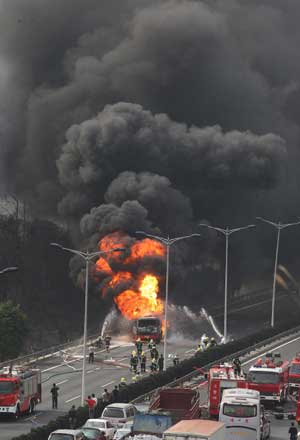 Oil truck self-ignites on South China expressway