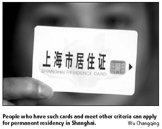 To qualify for permanent residency, applicants must have held a Shanghai residency certificate and have been in the city's social security system for at least seven years. Applicants must also be taxpayers, have obtained vocational qualification at medium or high levels, have never violated family planning policies, have clean credit and no criminal record. The policy gives priority to those with a senior vocational qualification, those who work at schools and hospitals in the suburbs, pay high taxes or insurance rates or have significant investments here. Shanghai has a population of 19 million people, six million of whom do not have a permanent residency. Jack Zhang, a 28-year-old working at a local public relations firm, said requirements for vocational qualification will make it impossible for many professionals to obtain a permanent residency. "There is no such senior vocational certificate for public relations experts," he said. "I think the policy is more for technicians." Zhang Xiongwei, from Qidong of Jiangsu province, said it is not possible for most of the four million migrant workers to obtain a hukou even though some have been working here for more than 20 years. "But it at least sets up goals for us who want a permanent residency," he said. "I know what Shanghai wants is not people but talents."
