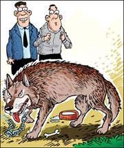 The man surnamed Li said he and some friends went hiking in the mountains just before the Spring Festival and found the "little dog" inside some bush. It was injured and Li said he felt sorry for the animal and took it to a local pet hospital for treatment. As the time passed, the animal got bigger and neighbors realized it resembled a wolf and called police. Police and wild animal workers confirmed it was a wolf and took it to the zoo. (Huashang Daily) |
