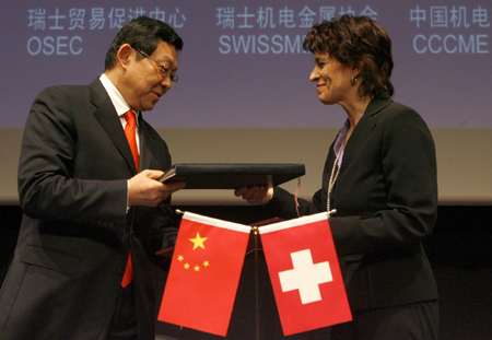 Highlighting China and Switzerland are important economic and trade partners to each other, Chen said the two economies are highly complementary. China is highly competitive in labor-intensive products, such as garments, jewelry, footwear and containers, offering budget choice to Swiss consumers, while Switzerland boasts a distinct competitive edge in watches, medicines, measuring instruments and precision machinery. In 2008, bilateral trade between China and Switzerland reached $11.25 billion, increasing 19.2 percent despite the economic downturn. China is now Switzerland's second largest trading partner in Asia. Leuthard said that the visit by the Chinese delegation sent a strong signal that China and Switzerland remain committed to open markets and against protectionism. She said the agreements between Swiss and Chinese companies are "good news to our businesses." "They signed contracts which will safeguard jobs and strengthen the cooperation between Swiss and Chinese companies in different fields in our economy," she said.