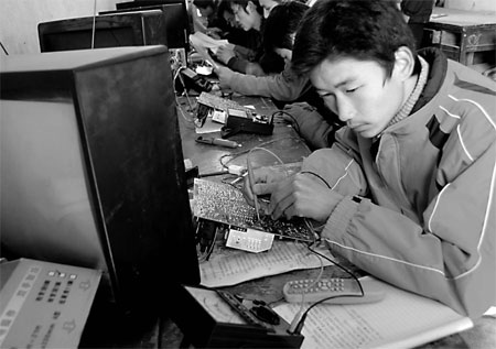 "I want to qualify as an electrician. Every building needs electricians," says Li, who has a high school diploma. He left the countryside of Southwest China's Sichuan province in 1990, and has worked in factories, on the exteriors of buildings and in stores, in Beijing, Guangzhou and Qingdao. "Work was everywhere then, as long as you had enough muscle," he says. "So I never thought about learning any special skills." As many as 20 million migrant workers nationwide returned home during the Spring Festival without jobs as the global financial crisis brought a halt to urban construction, and factories in coastal areas closed. Some returned to the cities after the vacation, seeking new jobs. Chongqing, a major source of migrant workers, has more than 3 million workers earning their living outside the area every year. This year, however, the local government estimates that about a million workers will have to stay at home. Li didn't go home this year to celebrate the Lunar New Year. He stayed in Beijing so that he could continue job hunting. He applied for a storage job position in an IT company, thinking his past experience would make him a good prospect, but was turned down because he didn't know how to use computer software. When he went to a job fair organized specially for migrant workers last week, he found that all the advertised positions required some skill set or the other. Only one construction site asked for an extra pair of hands, but even here a driving license - which Li does not have - was required. He read about the Beijing occupational skills training school on a leaflet for "Spring Breeze Action", an initiative launched by the local labor and social security bureau to help migrant workers find jobs.