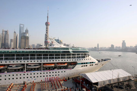 Updated: 2009-03-15 08:53 Passenger liner "Legend of the Seas" carrying 1,600 mainland tourists leaves for Taiwan at a port in Shanghai, East China, March 14, 2009. [Xinhua] |
