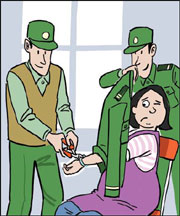 The woman surnamed Wei from Nanning, capital of the Guangxi Zhuang autonomous region, was unable to remove the jewelry from her hand because it has been swollen during her pregnancy. Firefighters used a special scissors to cut apart the jade bracelet. Wei, 29, went to the fire department after doctors told her they couldn't remove it. They told her to remove it before she delivered the baby. (www.xinhuanet.com)