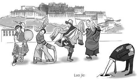 Updated: 2009-03-18 09:43 In the 1970s, I used to go from Canada to Italy every other year. My Italian relatives unpleasantly blamed "America" for all the ills of our changing culture. If a couple divorced, it was because they had emigrated to the United States. If a teen rudely answered his father, he was influenced by American movies. In those years, Tibet was known to most Westerners through "Tintin in Tibet". Today, everyone seems to know about Tibet though they have never been there. But they can recite as parrots inanities such as the Chinese government imposed a ban on Tibetan language and culture. If they had been there, they would know that only a minority of Tibetans can speak Chinese or English. Classes are taught in Tibetan, and Chinese is learned as the national language. But there's a dearth of Chinese teachers and several schools can't fulfill this part of their program. Moreover, the Chinese government spent and still spends huge amounts of money researching, collecting, interpreting and publishing Tibetan literature, songs, epics, and religious texts.