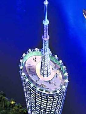 The giant Ferris wheel, to be built on the roof of the city's 450-m-high Guangzhou new TV tower, will be completed and opened to local residents and tourists before Oct 1, 2010, when the southern metropolis hosts the 16th Asian Games. Located on the bank of the Pearl River in the city's premier destination, the Ferris wheel, consisting of 16 transparent crystal cars, will carry 100 persons, Guangzhou Daily reported yesterday. Each car, with a diameter of 3.2 m, and a door 1.2 m high, will seat four to six persons.