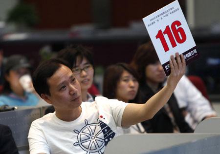 And the competition to buy the fou was so fierce, even the manufacturer Beijing Geshengong Arts failed to get one. Wang Qian, the boss of the Beijing-based crafts firm that failed to net a profit after devoting its entire factory to making the 2,040 fou used in the opening ceremony, shook his head yesterday when bidding soared for the drums. "I wanted to give the drums a good home when they retire from their glorious duties. I had a good plan to showcase them upon their return but it doesn't matter now," said 35-year-old Wang, who added his company would repair some of the damaged drums for collectors. Wang Jingtao, an overseas Chinese from Singapore who runs a cultural fund in Beijing, also failed in his bid to buy one of the souvenirs, but said he would try and persuade others to donate them to primary schools for overseas Chinese children. The next hot items up for grabs may be the 2,008 umbrellas imprinted with children's smiles used for the opening ceremony. The move is still awaiting approval from the organizers. |