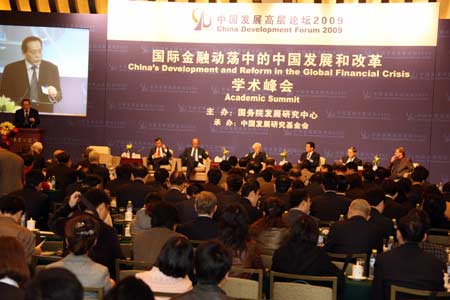 China is a developing country, and its economic recovery would have limited effect on world economy, which would pull out of downturn only after the recovery of major economies, said Fan, a member of the central bank's monetary policy committee. Fan said the country was likely to hit the 8-percent economic growth target this year. China Development Forum 2009 runs here in Beijing from Saturday to Monday, with the theme of China's Development and Reform in the Global Financial Crisis. |