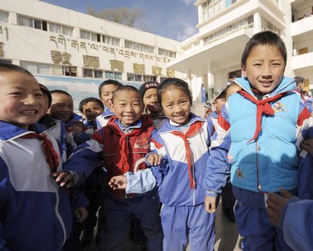 But Tsering is confident. She is a top student in her school and she can enter the college with lower exam scores than her Han Chinese peers thanks to the government's favorable education policy towards Tibetans. Equal Opportunity Students at her school can choose to study either Tibetan or Mandarin. Tsering says only three of the 17 classes in her grade are taught in Mandarin only and the rest in both languages. Tibetans can choose their classes, and the teaching materials are all the same. In job markets, local Tibetans also have choice. Tashi Drolma,who works at the local government publicity department, says the local government employs equal numbers of Tibetans and Hans. Government posts are considered the best and most stable jobs and are accessible to anyone who passes the examination. "Some government agencies, such as the police offices and political consultative conferences tend to hire more Tibetan employees as such posts require effective communication in Tibetan," she says. In the streets of Qamdo County, most signs are in Chinese and Tibetan. Locals can buy groceries and medicines in shops run by Han Chinese, who mostly hire local Tibetans to ensure effective communication. Modernization On The Plateau Qamdo Experimental Primary School, the first modern primary school in Tibet, was built by the Communist Party of China government in 1951. Here, Qiangba Puncog, chairman of Tibet Autonomous Region, once studied, and today 10-year-old Drolma Yangjen watches slides in the new multimedia room. "In Tibetan language classes, the slides were all in Tibetan language," she says, adding the computer has made her classes fun. The school also offers English classes. Not every Tibetan child is as lucky as Drolma Yangjen. It is impossible to provide multimedia facilities to every school in a region where the economy is mainly based on farming and animal husbandry. Tashi Drolma's favorite pastime is watching local TV, which airs adaptations of Chinese classics such as "Three Kingdoms" and "Journey to the West", all translated into Tibetan. Mobile phone services have long been available, but she was delighted when China Telecom, the country's largest telecommunications firm, introduced text messaging in Tibetan. "It was a great step forward to retain the language, but it may need some improvement as the input is a bit difficult to operate," she says. Tashi Drolma also chats online occasionally. "When I chat with Tibetans, I write Tibetan, and I use Mandarin with Han friends online." Inputting Tibetan on a computer is a lot more convenient than on a mobile phone, she adds. |