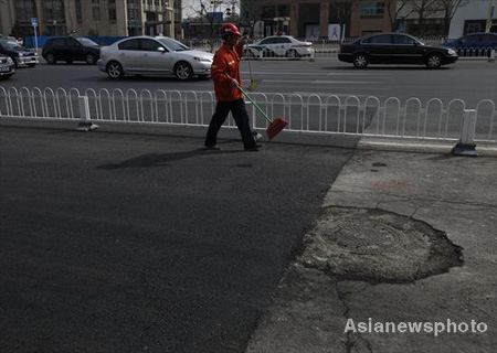 Currently investigators on the site kept measuring the road surface every two hours and said they haven't figured out whether the sinking was due to the collapse of the filled in area or affected by the underground construction. Beijing Metro Line 4, a north-to-south subway line under construction, is expected to be completed and begin service by October. |