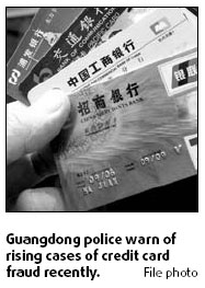 A recent report in Guangzhou Daily said the local public security department had, of late, received dozens of similar complaints from unassuming victims of credit card fraud, which has duped local citizens of "hundreds of thousands of yuan". In most cases, victims said they received phone calls from people who claimed to be customer service officials of their respective banks, asking for their credit card information for "internal review". The cheats then call the bank back on the phone, saying they have lost their credit cards - they give out the information acquired from the original owner - and ask for the bank to issue a new card, officials of the Guangzhou public security bureau said. There have been numerous cases where the banks, unaware of the fraud, have issued new credit cards to scammers, officials said, adding the victims only find out they have been cheated when they receive their whopping credit statement. "Customers have the option to set up their own passwords when they apply for a credit card. But if they do not use that option to make their cards password protected, chances are they will be duped sooner or later," a customer service official of the Bank of China, Guangdong Branch, surnamed Lu told China Daily on Monday. She said though most stores require customers to submit their signatures whenever they make a credit card purchase, "it is almost impossible to make out a cheat from the real owner since most people don't sign behind their cards, which they're supposed to". She added: "Signatures aren't required or asked for only when people use credit cards to make purchases online." Ctrip.com, an online tourism service agency, said they only require customers to provide their credit card numbers, card verification codes (CVC), its validity, and their ID numbers, to buy air tickets. Scammers have several tricks up their sleeves, such as using fake IDs to apply for credit cards and fake seals to get "no limit" business-used credit cards, the public security department said. Even though the police are trying to crack down on the crime, scammers are a step ahead. "They keep coming out with more innovative tricks to dupe the public," officials said. |