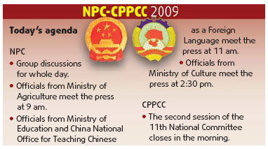 NPC, CPPCC agenda for March 12(China Daily)