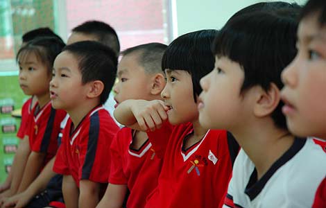 Children listen attentively during a mathematics class at Xiehe Kindergarten in Guangzhou on Sept 2. The school is reported to have asked parents to buy 27 items of uniform for each child. WU LU / FOR CHINA DAILY