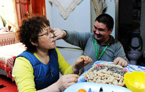 A man who won a 260 million-yuan ($41.3 million) prize in the China Welfare Lottery, wearing a?mask poses at Chengdu's China Welfare Lottery center in Southwest China's Sichuan province on Feb 14, 2012.[Photo/CFP] |