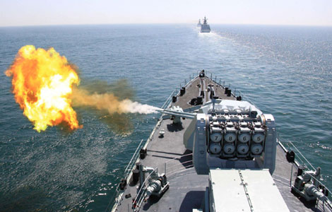 A fleet of Chinese and Russian navies, with three warships from each side, arrived at a joint drill area on Tuesday to conduct live-fire exercises, a move to ensure both sides' maritime interests by tackling new challenges and threats in the region.